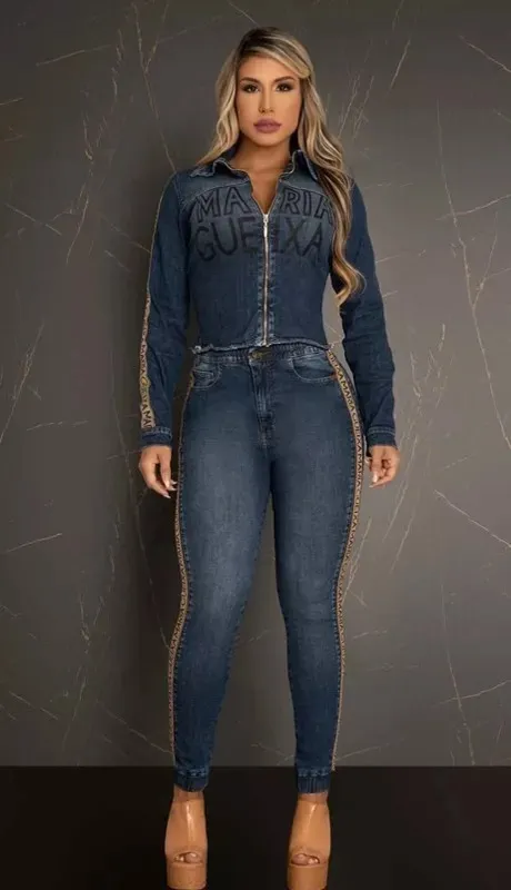 Jaqueta Jeans Classic. Jeans Escuro. Zíper metálico destacável na parte da frente. Faixa lateral em elástico personalizado. Maxi silk Detalhes desfiados na barra.